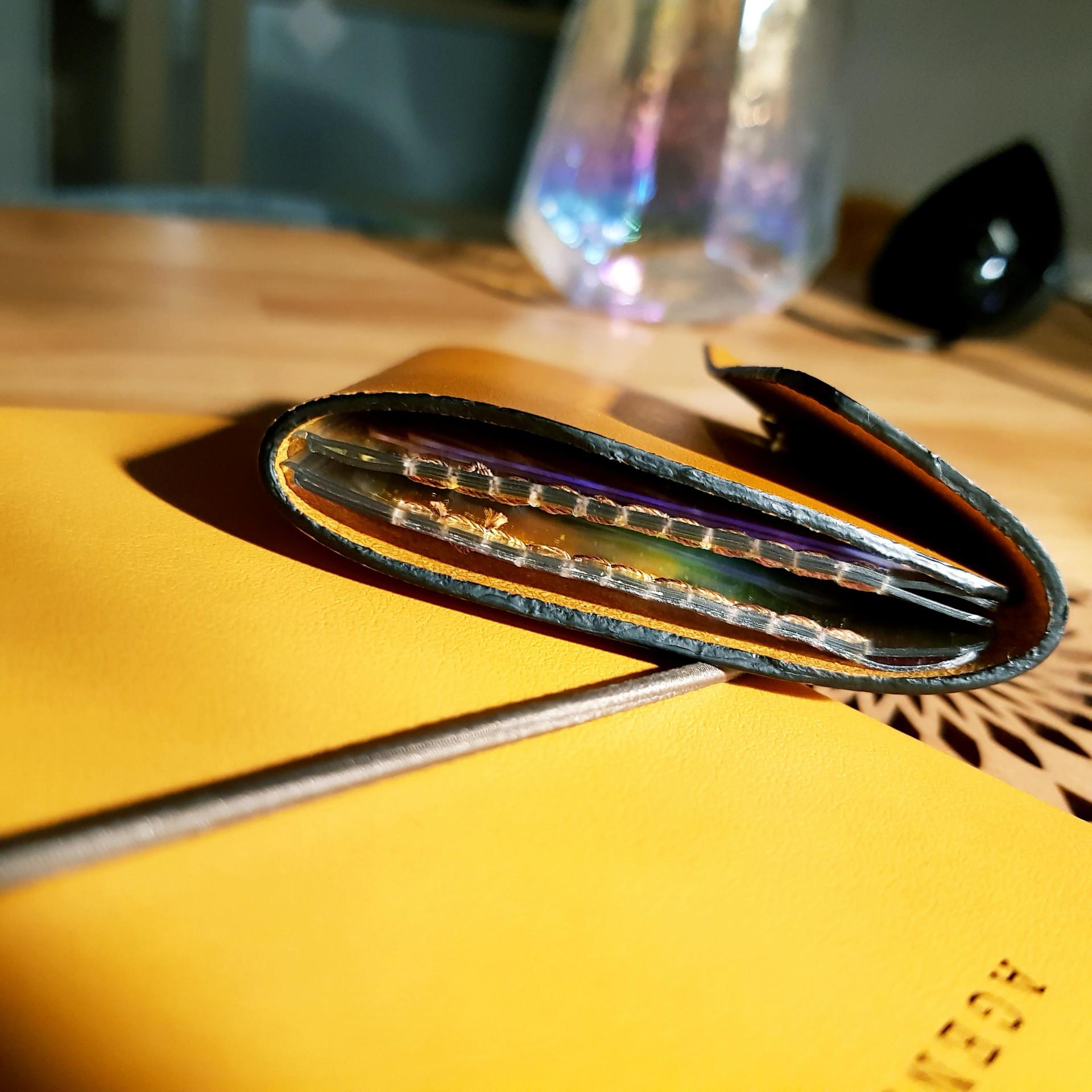 한 손에 쏙들어와 귀여운데 고급스러운 아코디언 카드 지갑 완성입니다.