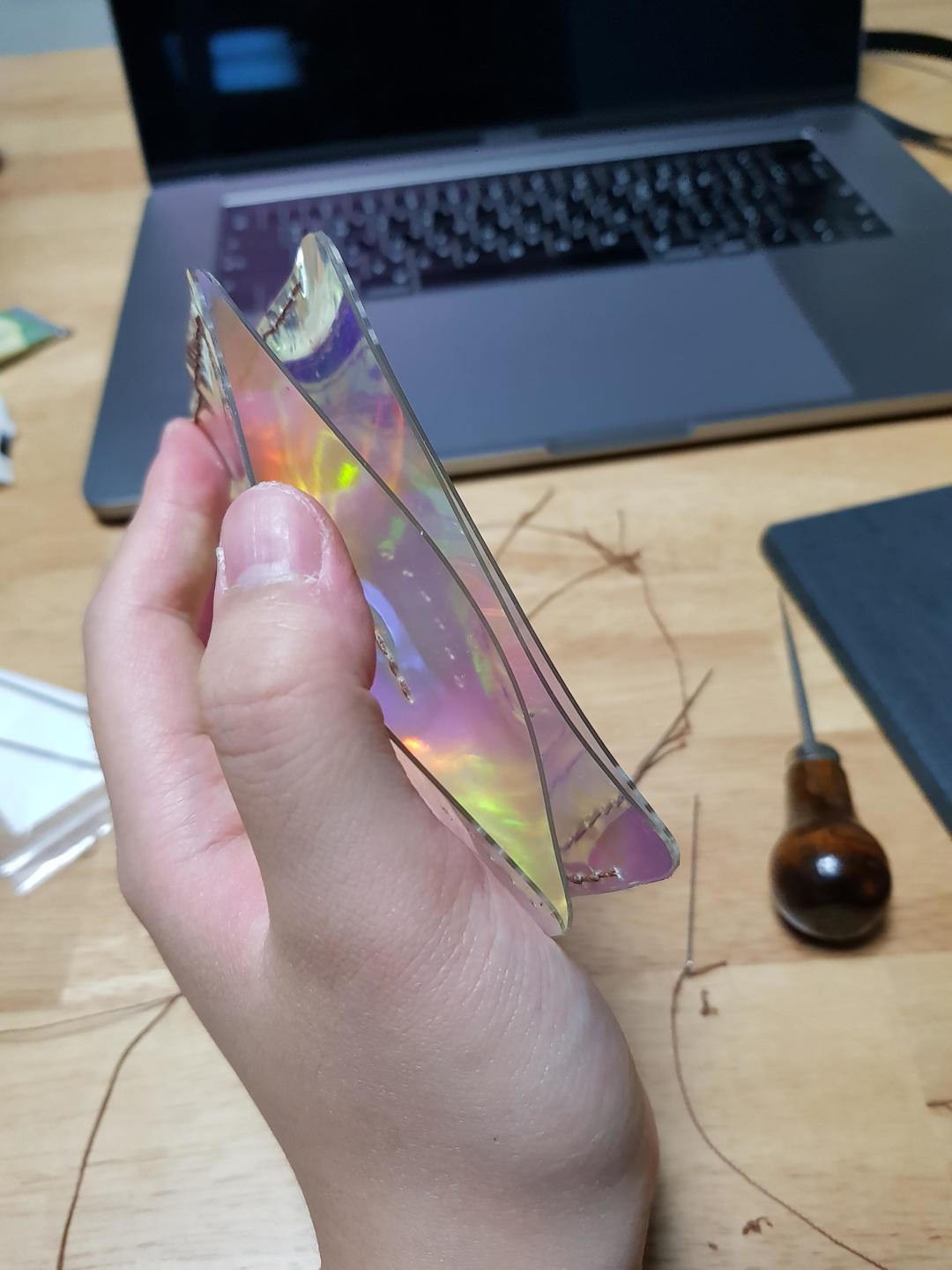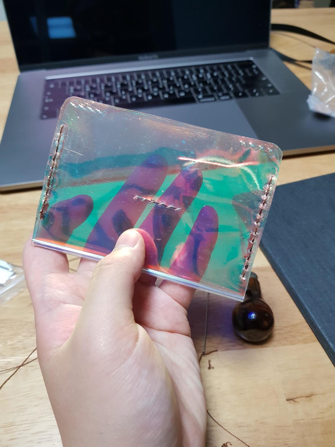 홀로그램 시트는 가죽과 달리 뻑뻑해서 바늘이 잘 들어가지 않기때문에,